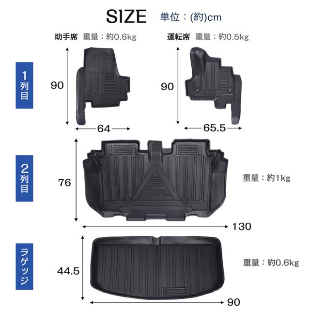 【サイズ】:(約)助手席/64×90cm・運転席/65.5×90cm・2列目/130×76cm・ラゲッジ/90×44.5cm