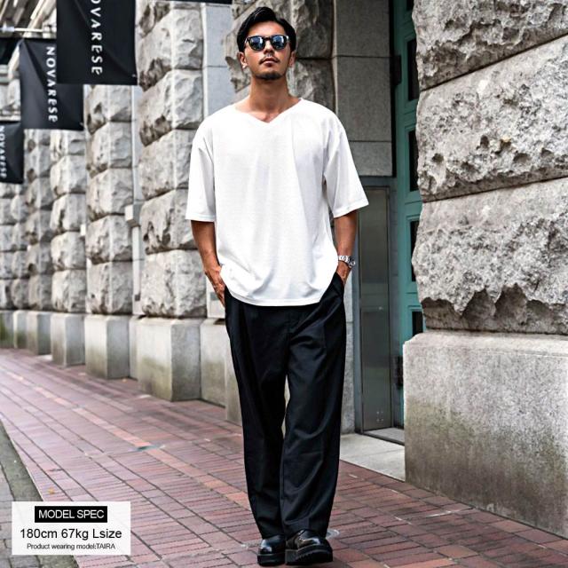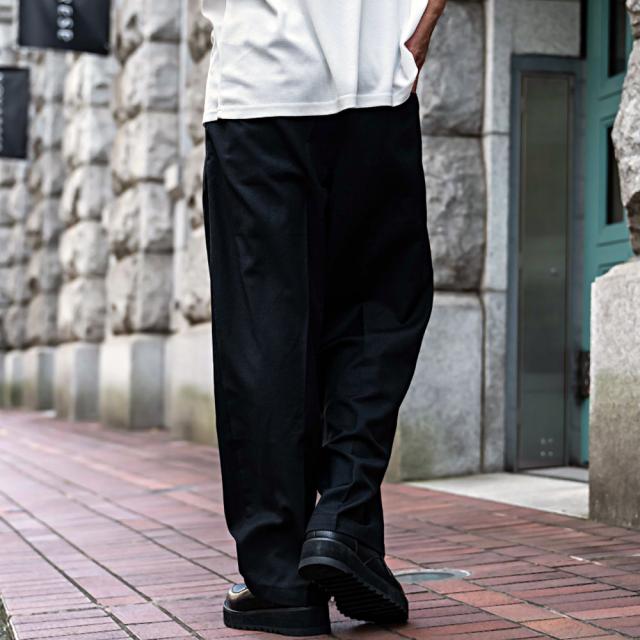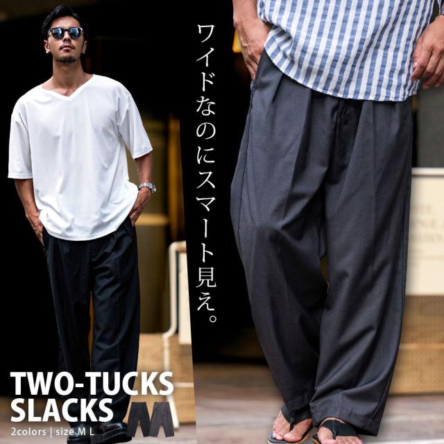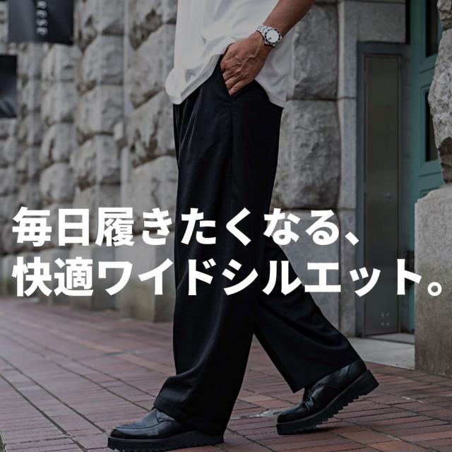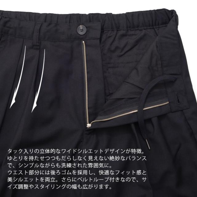 タック入りの立体的なワイドシルエットデザインが特徴。