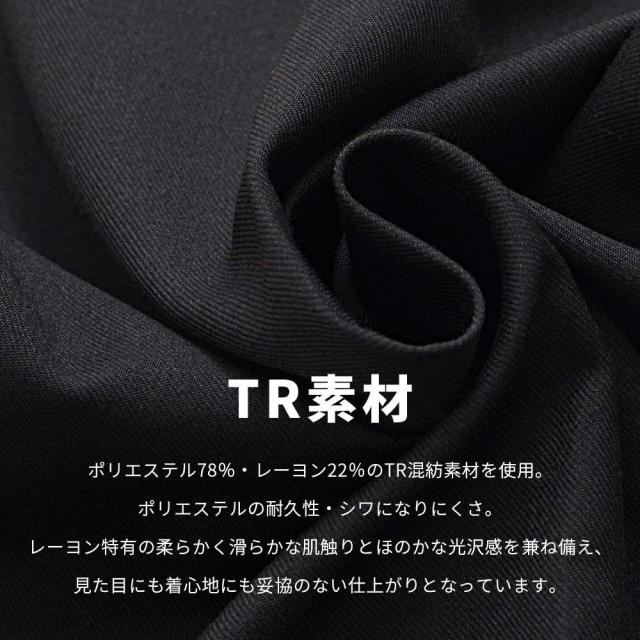 素材には、ポリエステル78%・レーヨン22%のTR混紡素材を使用。