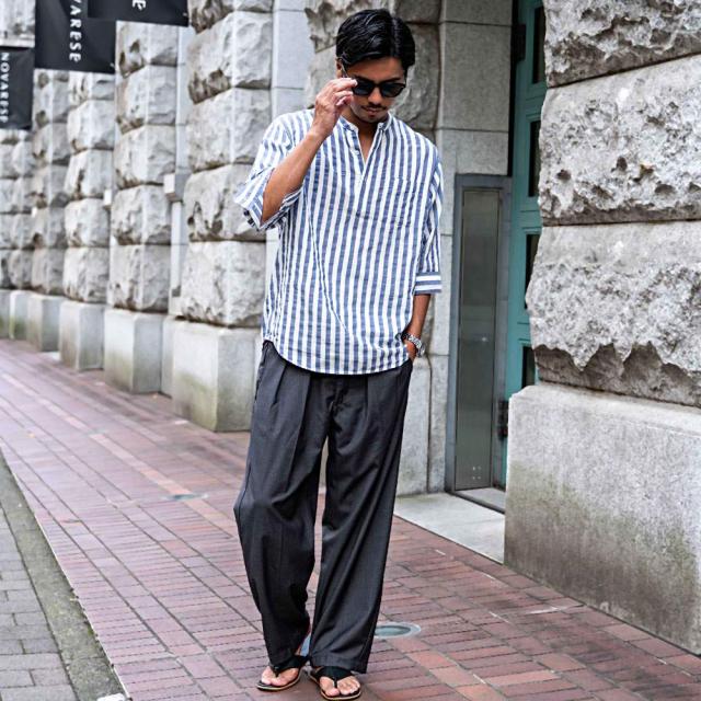 ゆとりを持たせつつもだらしなく見えない絶妙なバランスで、シンプルながらも洗練された雰囲気に。