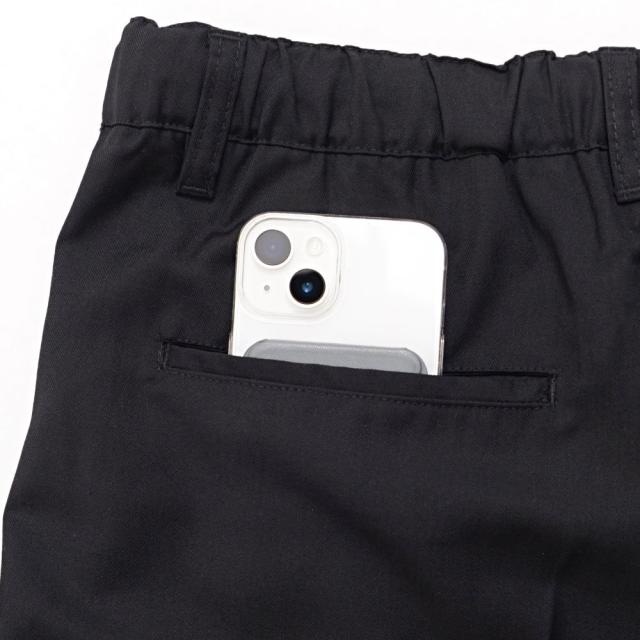 ウエスト部分には後ろゴムを採用し、快適なフィット感と美シルエットを両立。
