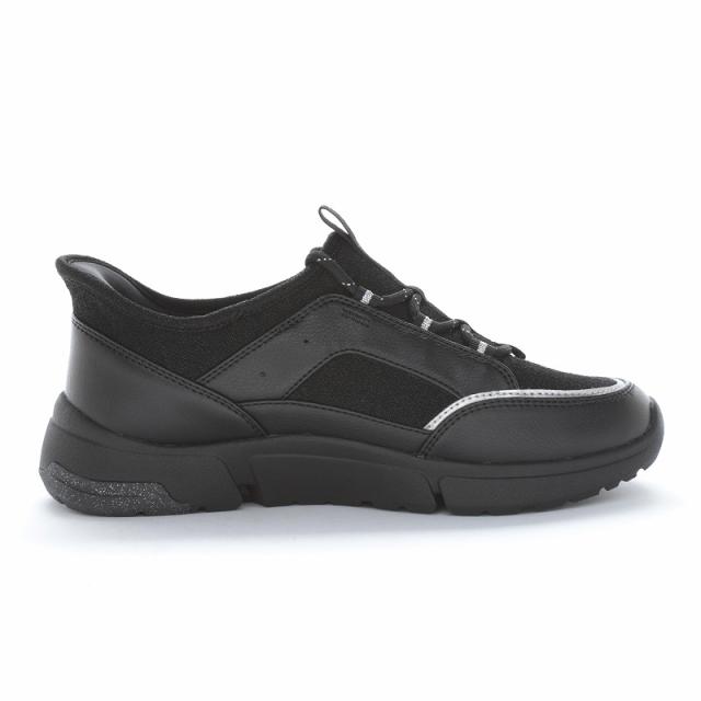 「ムーンスター イブ」のカジュアルシューズです。ハンズフリーの「らくにすぽっと履ける靴」シリーズです。柔らかく伸びのあるストレッチ素材を全面に使用したスニーカーです。軽くてクッション性にも優れているので、スポーティーな履きこなしや、アクティブに動く日などにもおすすめです。ヒールの高さは4.5cmで、重量は23.0cmで片足約210gの軽量設計です。【イージーゴー】1ステップでEASYにGO!脱ぎ履きラクラクな設計です。【ワイド設計】幅広の方に対応した商品です。【やわらか設計】足になじみやすい柔らかな素材を使用しています。【非対称カウンター】外側よりも内側が長いカウンターを搭載することで踵が内側に倒れるのを防ぎます。【衝撃吸収】歩行時の足・膝・腰にかかる負担を和らげるよう衝撃を吸収する素材を使用しています。【つまずき防止】つまずきにくいアウトソール設計です。【ガラス防滑ソール】ガラス(粒子、繊維)入りゴム配合で防滑性に優れ、氷や濡れた大理石でも快適に歩行ができます。【Ag+抗菌防臭】銀イオンの抗菌作用でにおいのもととなる菌の増殖を抑制し、防臭効果を発揮。【軽量設計】