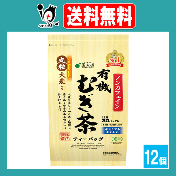 有機むぎ茶TB 30袋入×12個セット【国太楼】香り高く甘みのある味わい 水出しでもおいしい 水出し・お湯出し両用 ティーバッグ ノンカフェイン 麦茶 むぎ茶 むぎちゃ 有機大麦使用 さらに香りアップ丸粒大麦入り