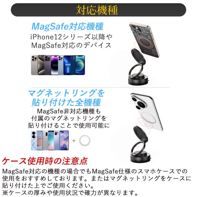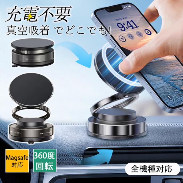 【当日発送】スマホホルダー 車 車載 magsafe 車載ホルダー スマホスタンド 360度回転 マグネット吸着 真空式吸着 折り畳み式 片手