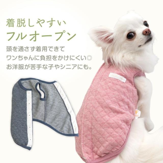 寒がりさんや 介護 のお供に 犬 服 冬 秋 オーガニック キルト スリーパー ダックス 小型犬用 ベスト 傷舐め対策 着脱簡単 チワワ トイプードル ミニチュアダックス ダックスフンド 春 夏 背中開き 介護服 犬の服
