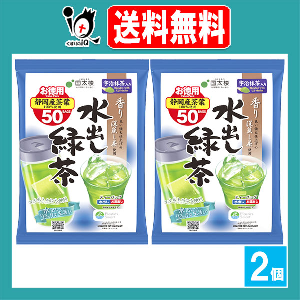 宇治抹茶入り水出し緑茶TB 50袋入×2個セット【国太楼】香り良い強火仕上げの深蒸し茶使用 ティーバッグ 水出しでリラックス マイボトルにも便利 水出し・お湯出し両用 お徳用 静岡産茶葉100%使用 緑茶 お茶 茶葉 深蒸し茶