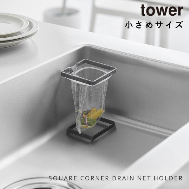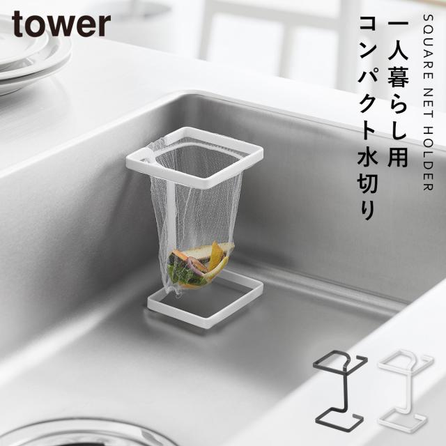 コーナーに置ける水切りネットホルダー タワー スクエア 山崎実業 tower 水切りネットホルダー 水切り コーナー ラック おしゃれ モノトーン ホワイト ブラック 10205 10206