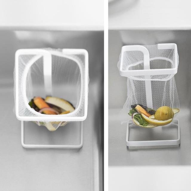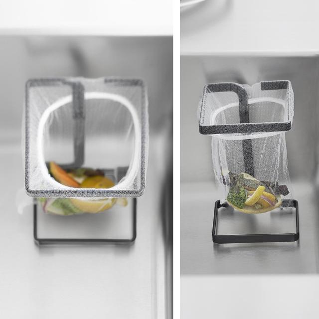 コーナースペースを無駄なく活用!狭いキッチンシンクでも置き場所に困らないコンパクトな水切りネットホルダーです。