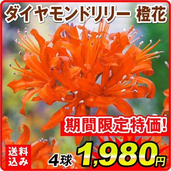 [送料込み]夏植え球根 ダイヤモンドリリー (ネリネ サルニエンシス) 橙花 4球
