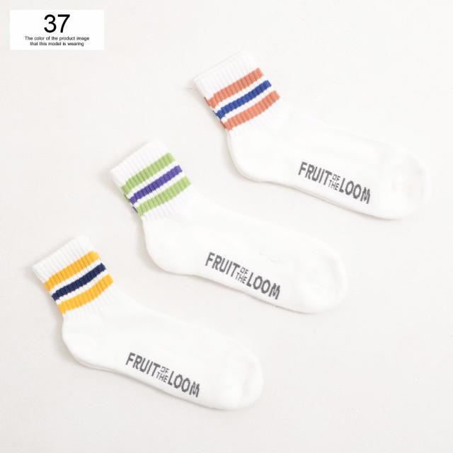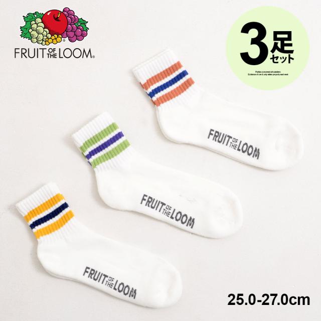 靴下 ソックス メンズ ブランド おしゃれ 3Pセット 3足セット 3足組 FRUIT OF THE LOOM フルーツオブザルーム くつ下 くつした ライン ロゴ シンプル ホワイト イエロー グリーン オレンジ 25〜27cm 大人 アメカジ カジュアル 春 夏 秋 冬 返品・交換対象外 [70078600]