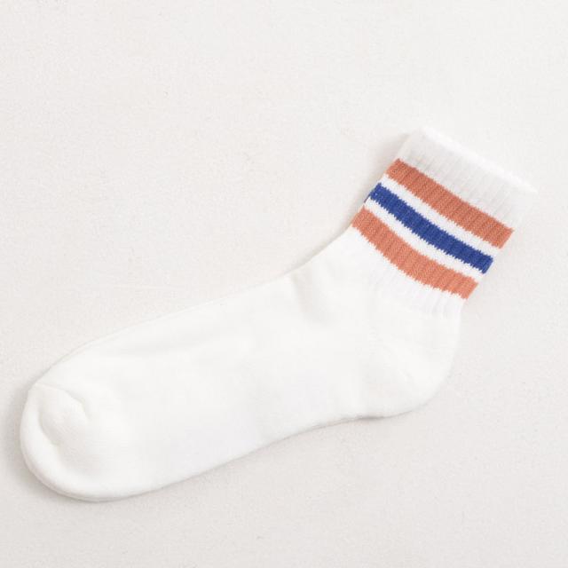 ホワイトボディにカラフルなラインを施した、シンプルながらもコーディネートのアクセントになるデザインです。