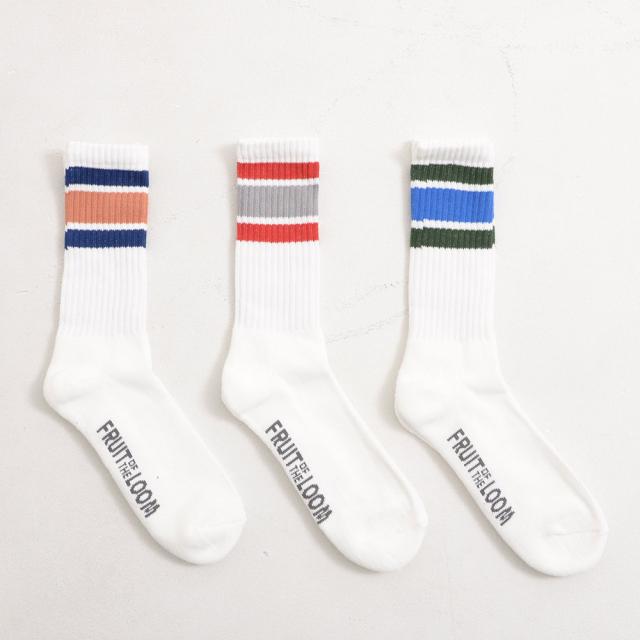 SILVER BULLET(シルバーバレット)にFRUIT OF THE LOOM【フルーツオブザルーム】カラフルラインクルーソックスAが入荷しました。リブラインソックスのお得な3足セット。