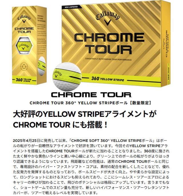 キャロウェイ CHROME TOUR 360° YELLOW STRIPE ゴルフボール ●2025年モデル● 1ダース(12球入り) Callaway Golf