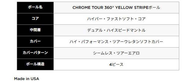 今回そのYELLOWSTRIPEアライメントを搭載したCHROMETOURボールが新たに加わることとなりました。