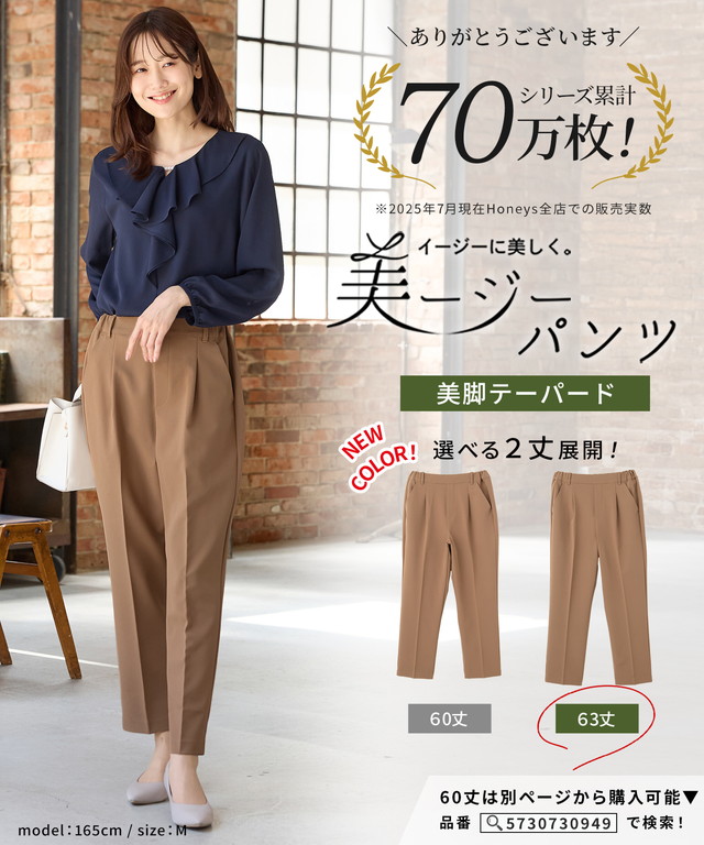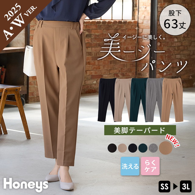 ボトムス パンツ 美ージーテーパードパンツ 大きいサイズ オフィス きれいめ テーパードパンツ レディース Honeys ハニーズ 美ージーテーパード(股下63cm)