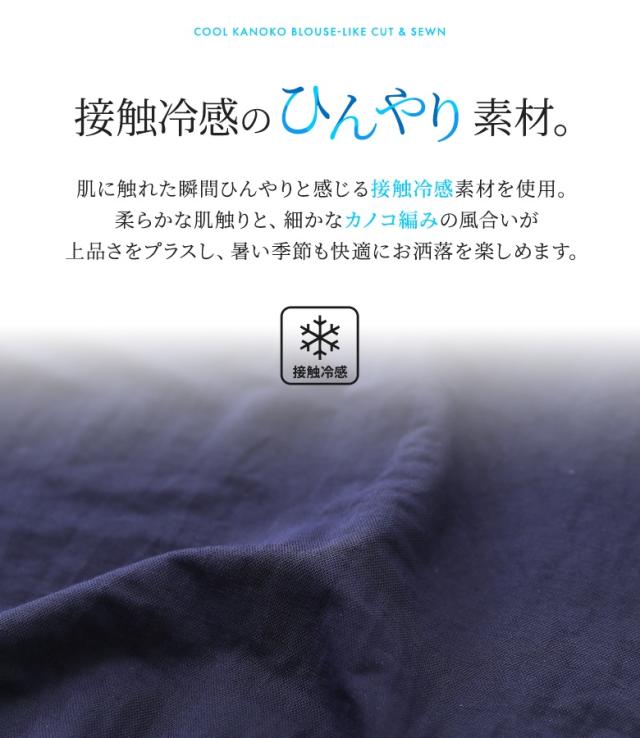 『冷感カノコブラウス見えカットソー』※メール便可※【10】[カットソー 半袖 レディース トップス ブラウス 接触冷感 ひんやり レイヤード フレア袖 オフィスカジュアル 着回し 春 夏 秋]