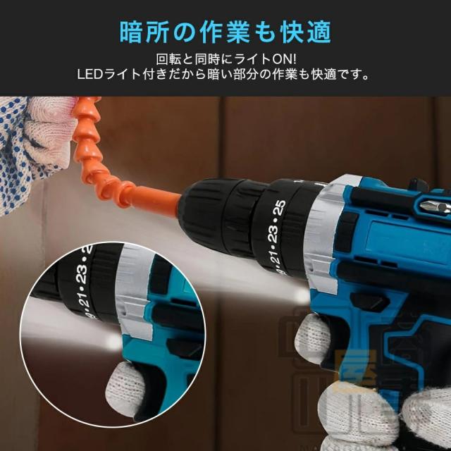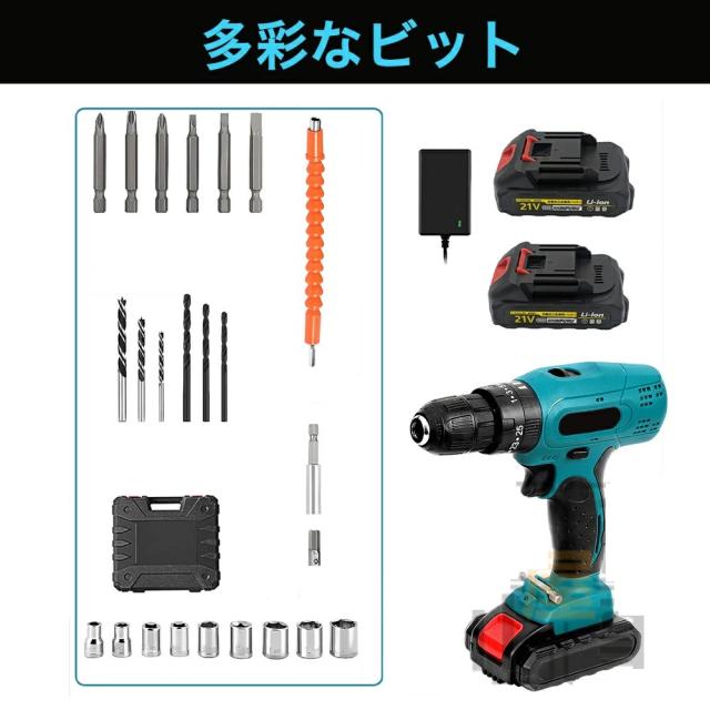 【au pay 1位】電動ドライバー セット 充電式 電動 ドライバー 25+3段階トルク調節 最大50N.m 21バッテリー 電動ドライバーセット 工具 小型 充電 式 充電式ドライバー 電動ドリルドライバー ハイパワー 家庭用 マキタバッテリー相互対応 21v