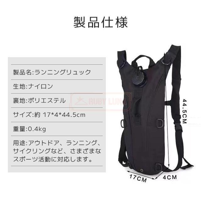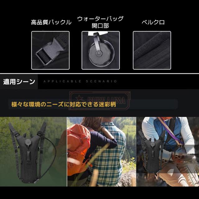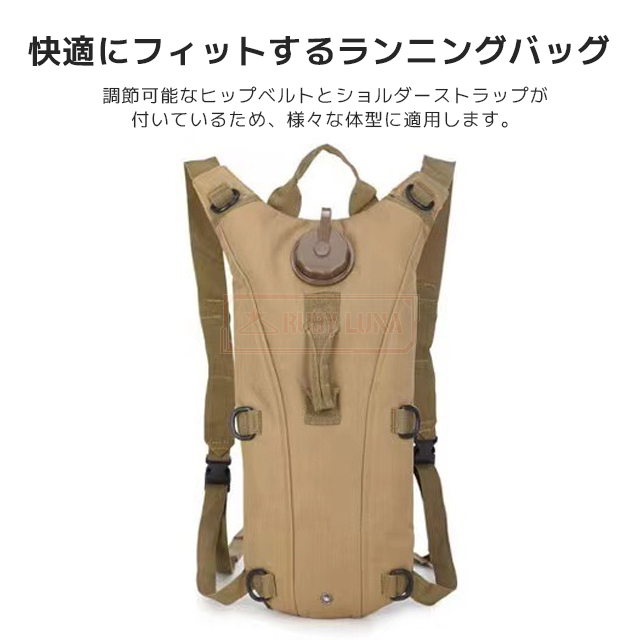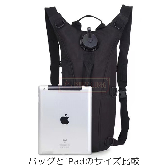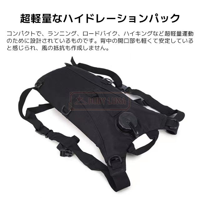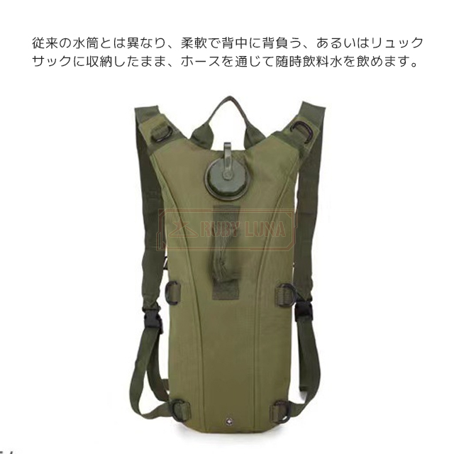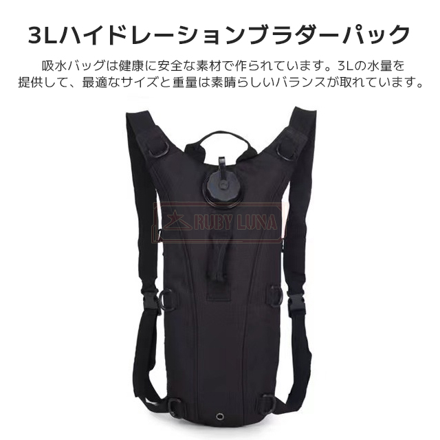 | 【3Lハイドレーションブラダーパック】 | ◆吸水バッグはEVAなし、健康安全な材料で作られています。3Lの水量を提供して、最適なサイズと重量は素晴らしいバランスを取れます。 |
