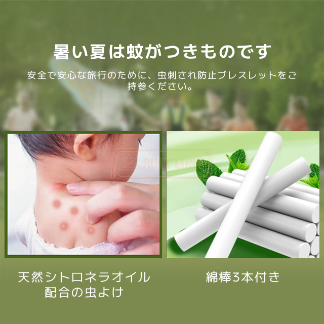 | 【より長持ちで効果的】 | ◆虫除け綿棒(3本)を付属、240日間連続虫除けできます。また、ご使用されない時は袋に入れてチャックを閉めておけば効果がもっと長持ちします。 |