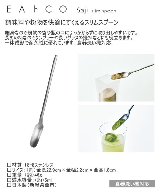 EAトCO サジ スリムスプーン AS0056 日本製 送料無料 スプーン ロングスプーン スリムスプーン 細身 長柄 サジ すくう ステンレス製 食器洗い機対応 調味料 粉物 混ぜる シンプル おしゃれ 便利 手軽 キッチン用品 ヨシカワ EAトCO イイトコ