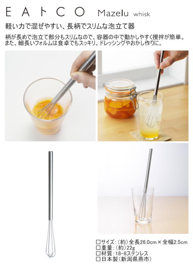 EAトCO マゼル 泡立て AS0034 日本製 送料無料 泡立て器 ミニ泡立て ミニサイズ 長柄 スリム ドレッシング 溶き卵 お菓子作り 混ぜる 攪拌 シンプル おしゃれ 便利 手軽 キッチン用品 ヨシカワ EAトCO イイトコ