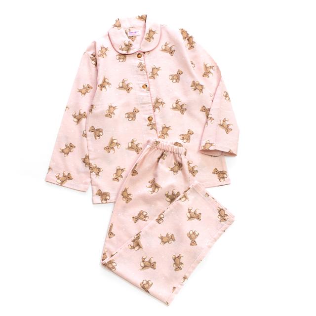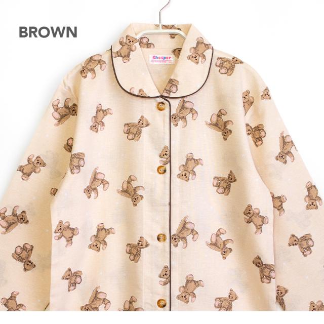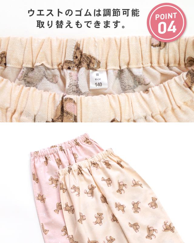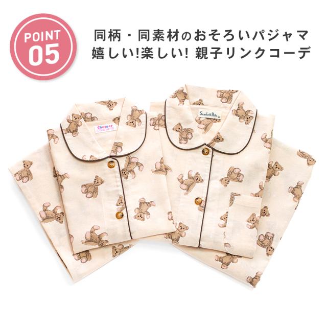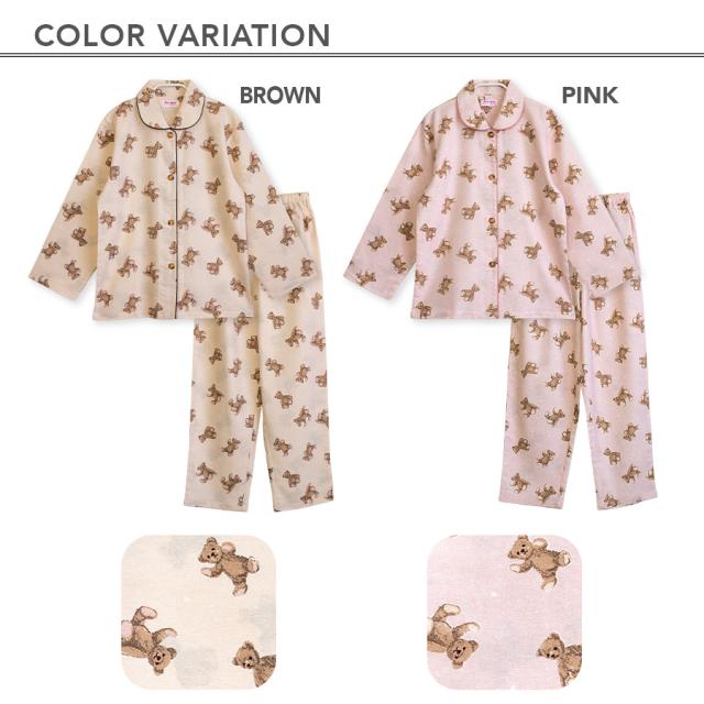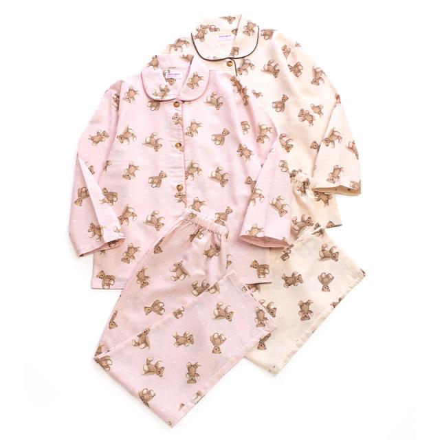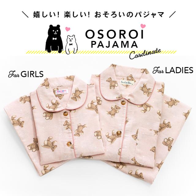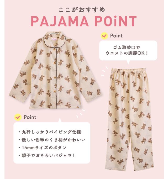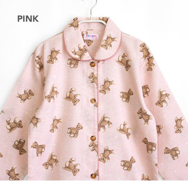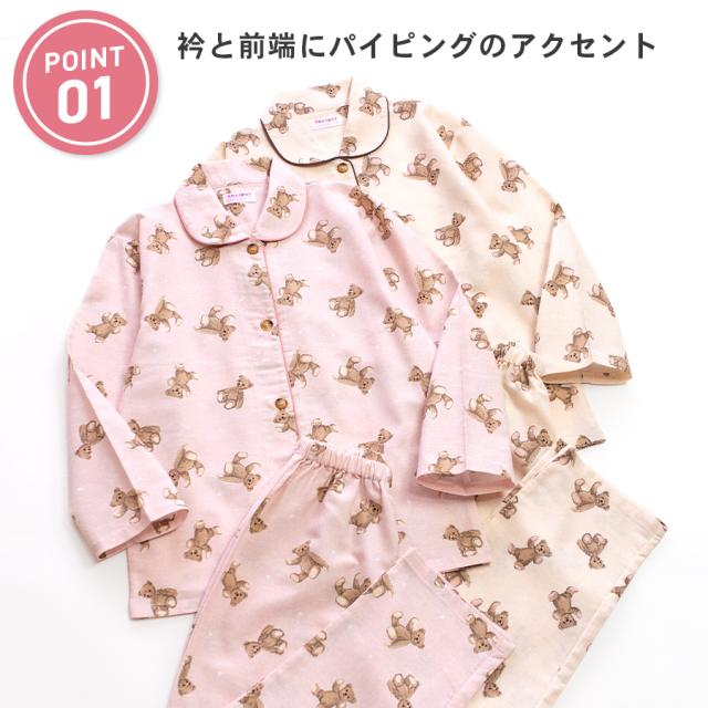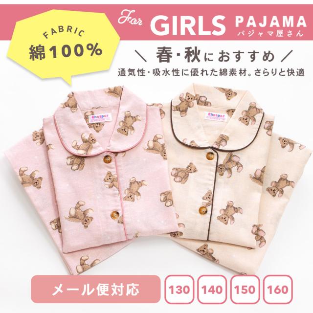 パジャマ キッズ 女の子 綿100% 長袖 春 秋 前開き ボタン くま柄 ブラウン ピンク 100 110 120 130 140 150 160 子供 ジュニア ガールズ かわいい 親子 おそろい メール便なら 送料無料 81651
