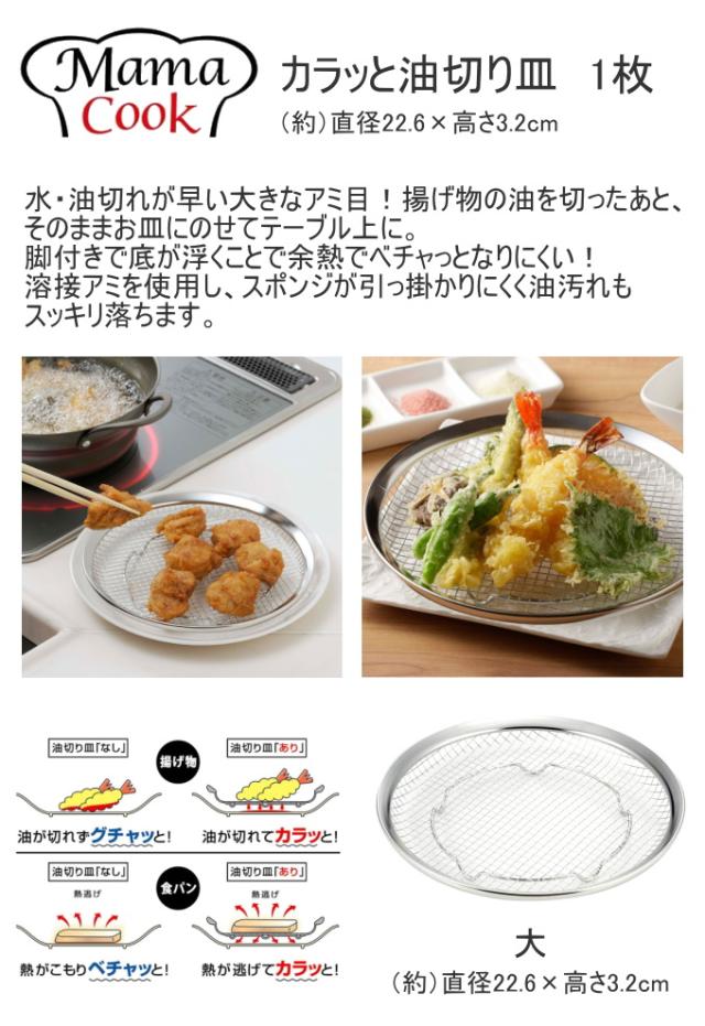 ママクック カラッと油切り皿 大 1枚 40252 日本製 燕三条 18-8ステンレス ステンレス製 皿 揚げアミ ざる ザル 揚げ物 揚げたて とんかつ フライ 天ぷら から揚げ 油切り ヘルシー 水切り 丈夫 便利 キッチン キッチン用品 調理器具 下村企販