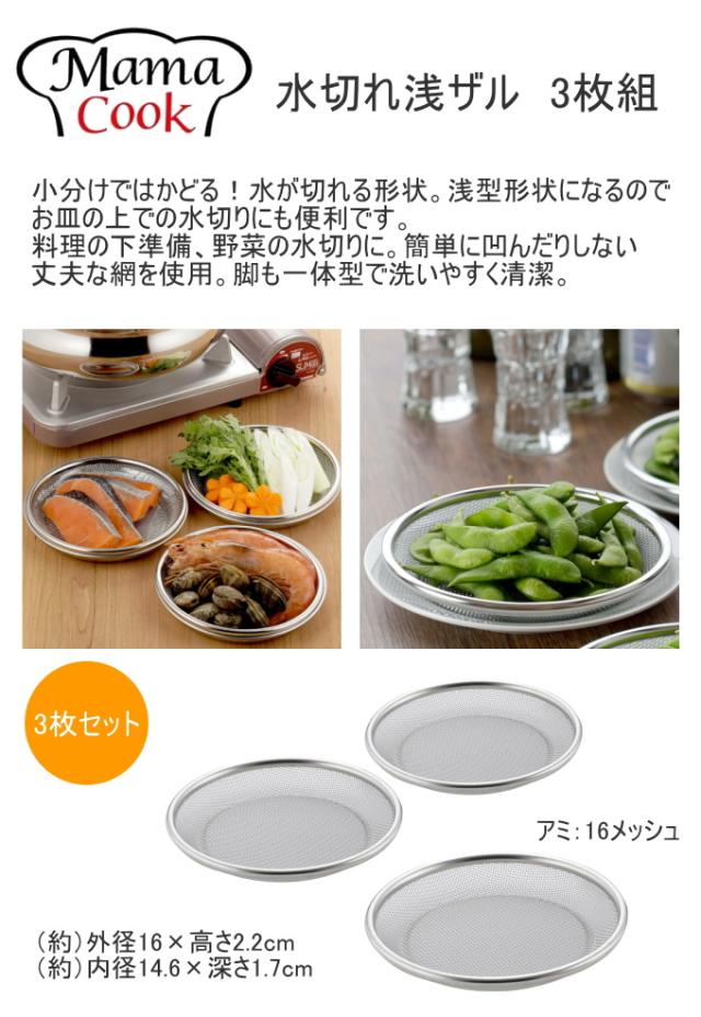 ママクック 水切れ浅ザル 3枚組 43024 日本製 燕三条 18-8ステンレス ステンレス製 ざる ザル 浅型 浅ザル 3枚セット 水切り 野菜 下ごしらえ 下準備 丈夫 便利 キッチン キッチン用品 調理器具 下村企販