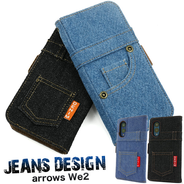 スマホケース arrows We2 F-52E/FCG02用 手帳型 ジーンズデザイン デニムケース アローズウィー 保護 傷防止 スマホ アローズウィーツー docomo ドコモ UQ mobile 楽天モバイル おしゃれ メンズ レディース 男性 女性 かわいい カジュアル