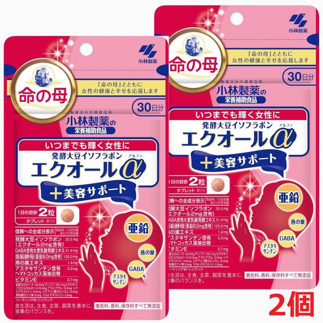 【2個セット・メール便発送】発酵大豆イソフラボン エクオールα +美容サポート 60粒 30日分×2個
