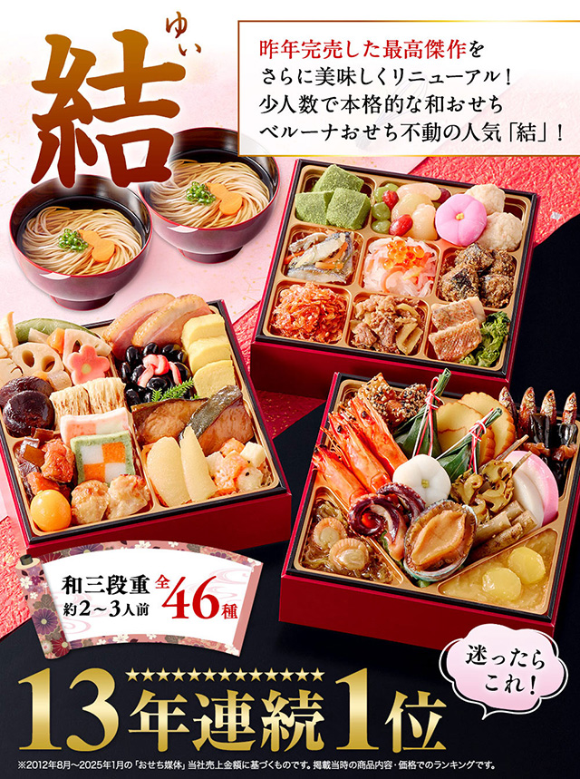 ベルーナおせち不動の人気「結」!13年連続 おせち売上第1位!!(※)