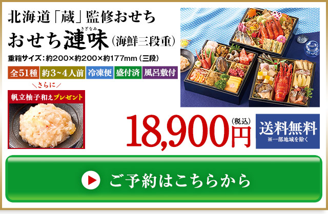 おせち 予約 2026 おせち料理 海鮮 冷凍 北海道「蔵」監修おせち 漣味 海鮮三段重 全51種 3人前 4人前 プレゼント付 12月29日お届け 【送料無料】