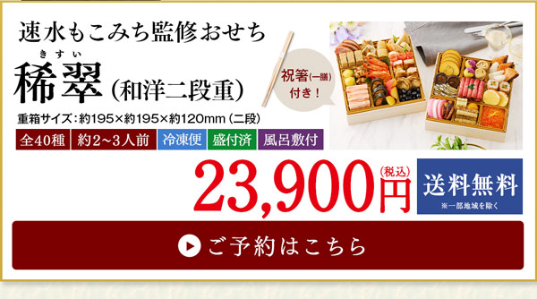 おせち 予約 2026 おせち料理 和風 洋風 冷凍 速水もこみち監修 稀翠 二段重 全40種 2人前 3人前 プレゼント付 12月29日お届け 【送料無料】