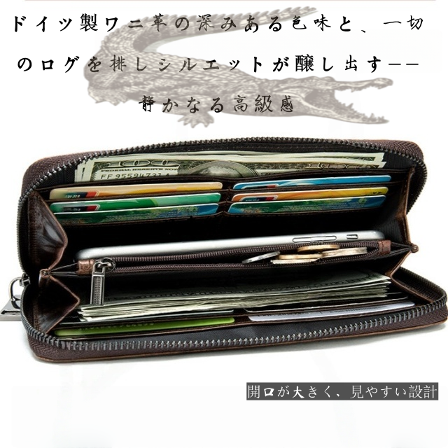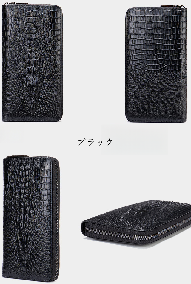【送料無料】長財布 高級 財布 レザー コインスルー カード入れ 大容量 ラウンドファスナー 上質ワニ革 多機 クロコダイル 本革 メンズ 小銭入れ レディース 男女兼用 本物 グリーン ブラック 黒 鰐 エイジング 記念日プレゼント 贈り物 お祝い 軽量 金運アップ