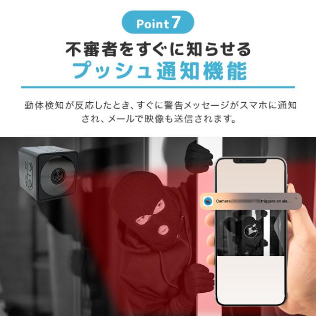 安心のプッシュ通知機能付き!動体検知が反応したとき警告メッセージをスマホに通知可能。