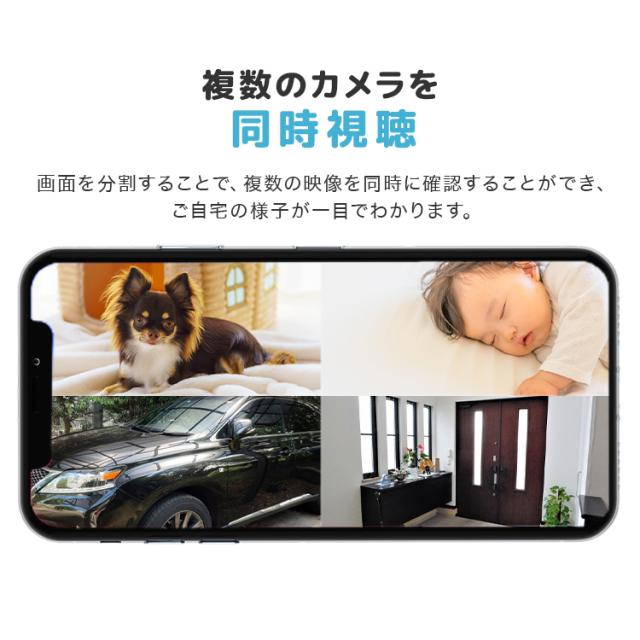 | その他 | ・最大5人まで共有視聴可能 ・1台の端末で最大10台のカメラとペアリング可能 ・同時視聴してるカメラの中から1つのカメラを選択可能 ・共有視聴している端末で別々のカメラを選択可能 |