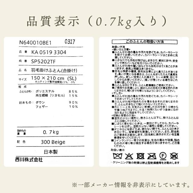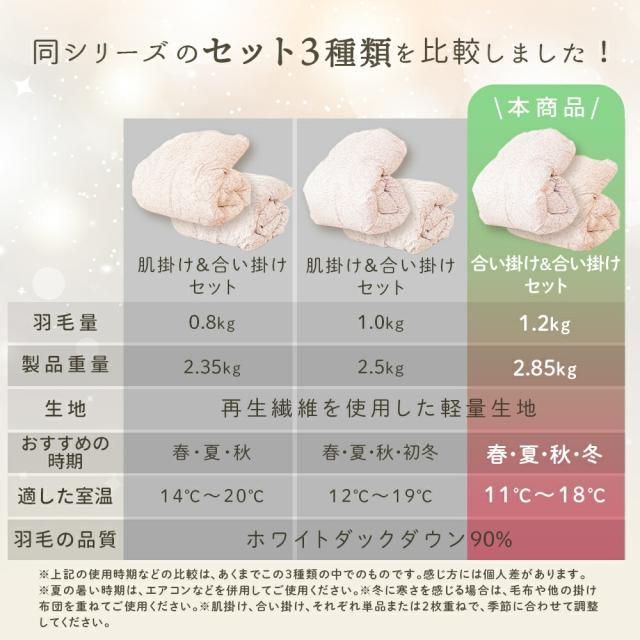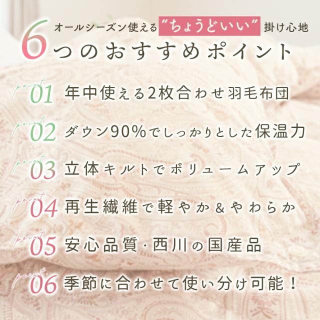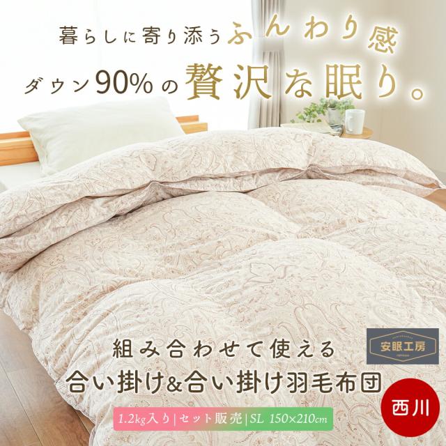 [keyword|当社限定 西川 2枚合わせ羽毛布団 シングル 国産 オールシーズン ホワイトダウン90% 1.2kg 合掛け 羽毛布団 デュエット 羽毛ふとん 日本製]
