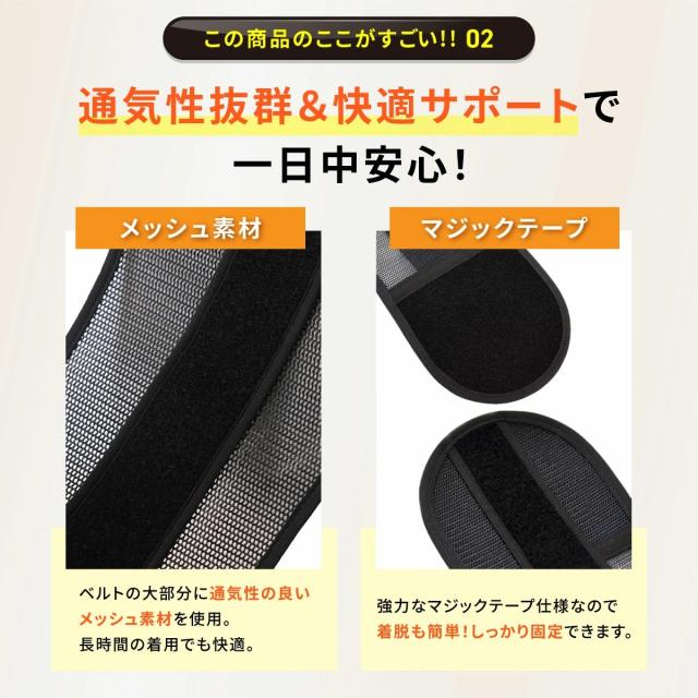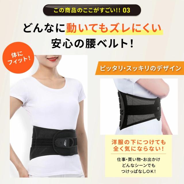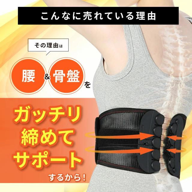 ・腰痛軽減のためのコルセットとして大人気!腰にしっかりフィットし、痛みを感じにくく、動きやすさも確保。日常生活や仕事中の腰をサポートします。