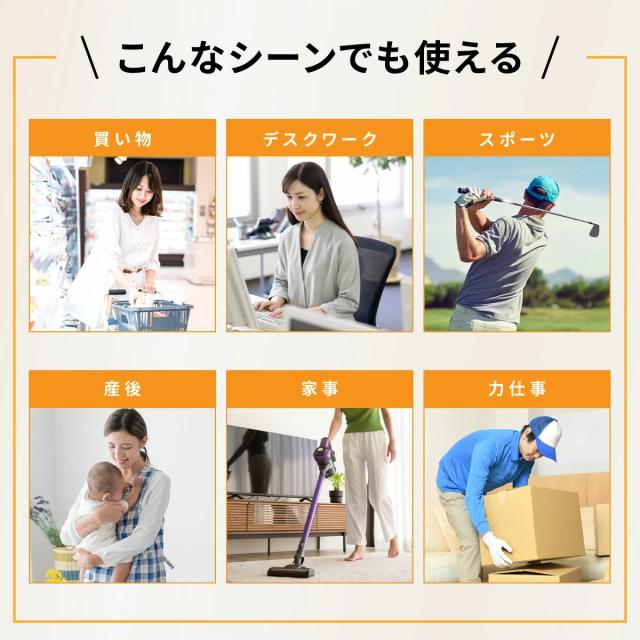 ・腰痛が気になる方、猫背やぽっこりお腹が気になる方、姿勢の歪みが気になる方、むくみが気になる方、腰に負担がある作業をする方、産前産後の骨盤ケア、家事や仕事をしながら体型改善など…様々なシーンでご使用いただけます。