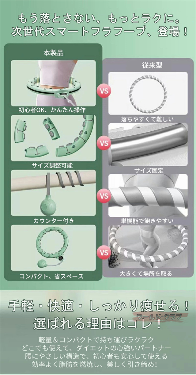 スマートフラフープ ダイエット 効果 落ちないフラフープ 自動計数ダイエット器具 お腹周りシェイプアップ 自宅トレーニング サイズ自由調整 お尻引き締め 産後トレーニング 室内フィットネス 静音 簡単エクササイズ