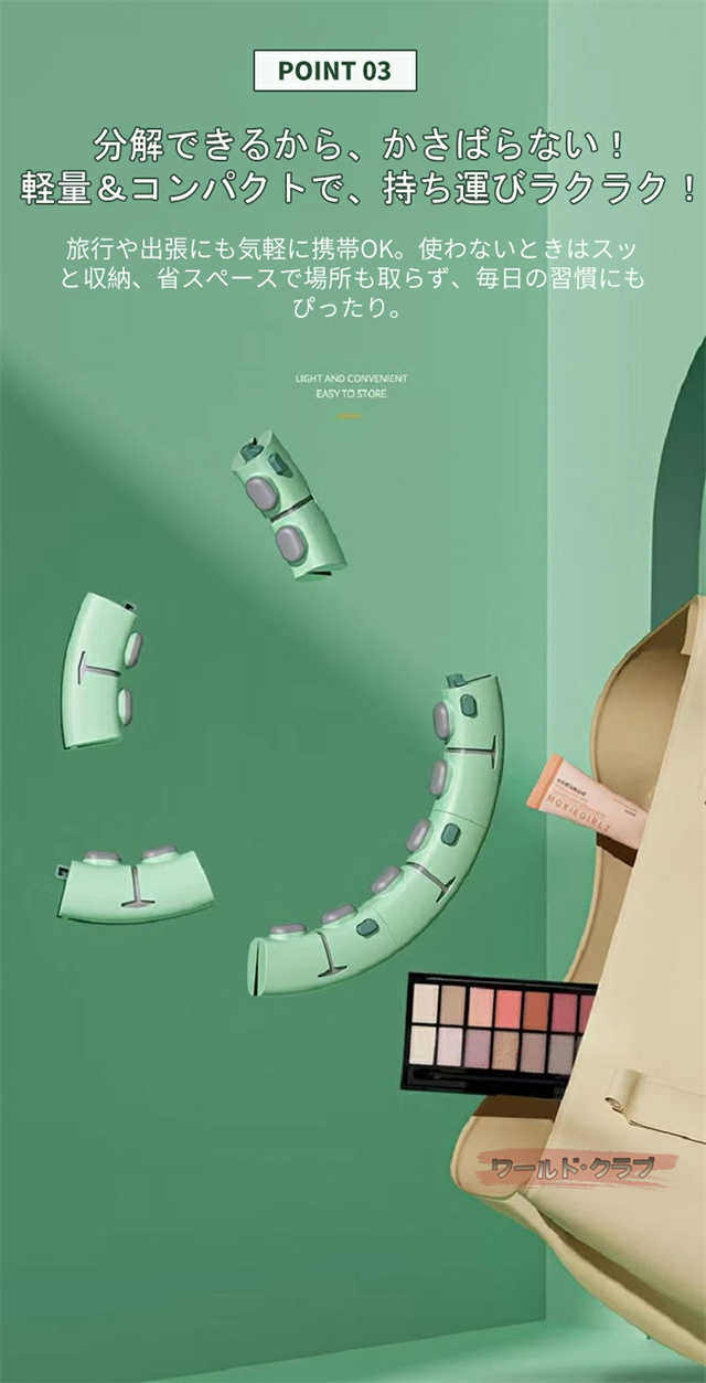 ●特徴:振動マッサージ機能、360度包み込み設計、サイズ調整可能、組み立て式、静音設計