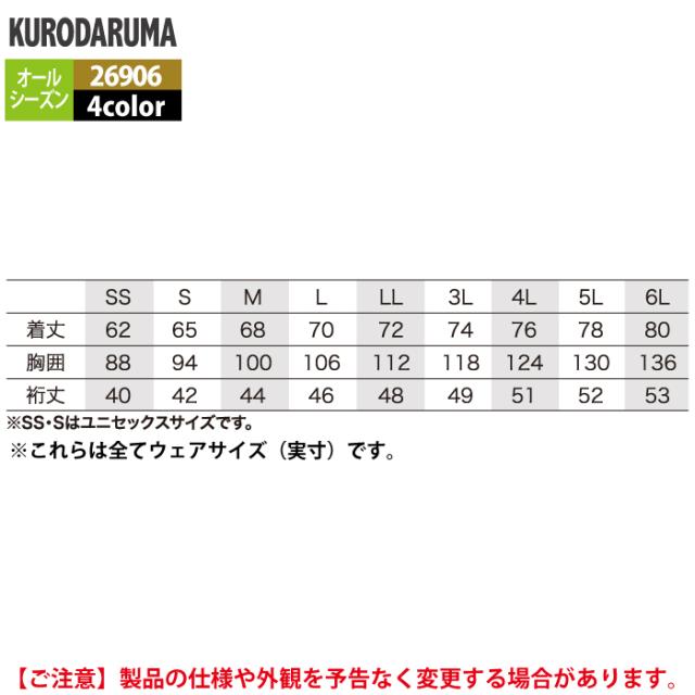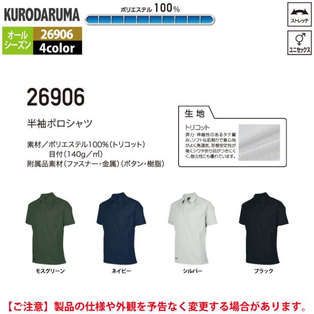 クロダルマ 作業服 春夏 26906 半袖ポロシャツ 3L-5L 作業着