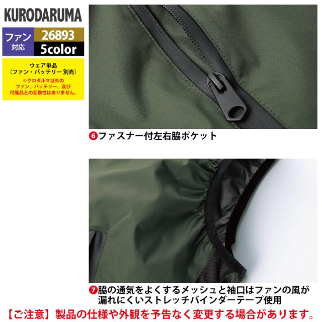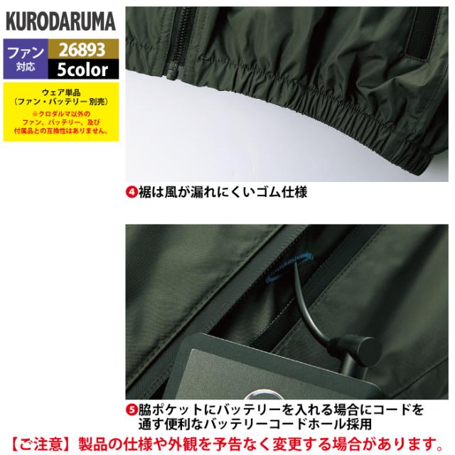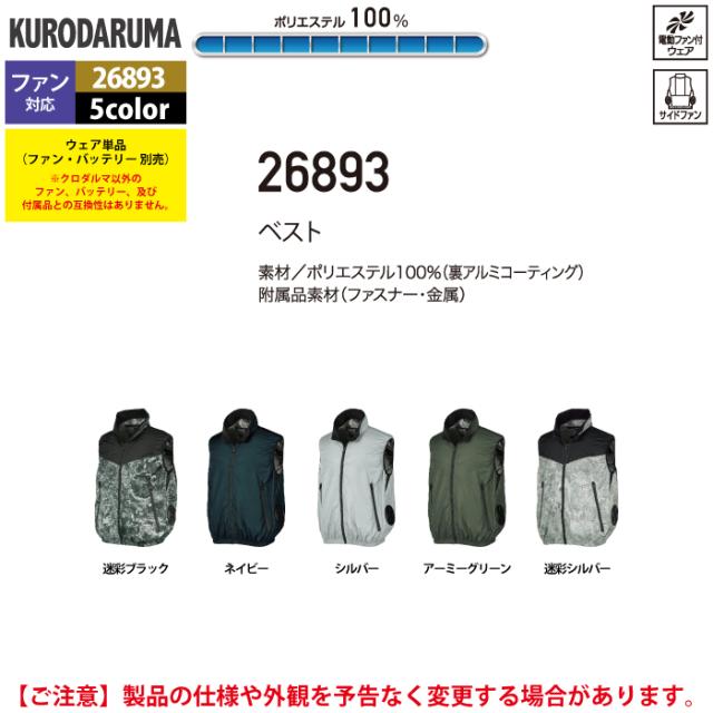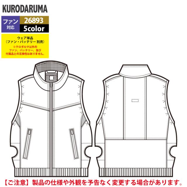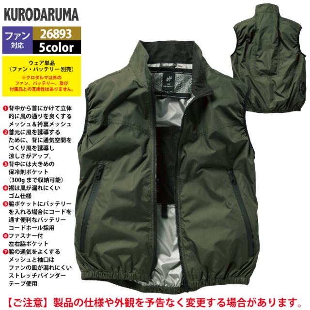 ファン付きウェア (服のみ) クロダルマ 作業服 春夏 26893 ベスト 3L-5L 作業着