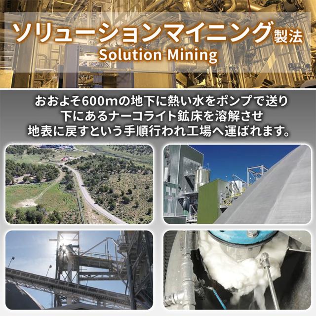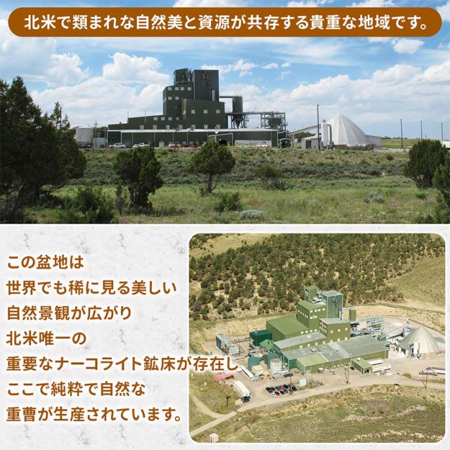 アメリカ(コロラド州)で採掘したナーコライト(鉱物)100%原料に作られた重曹です。