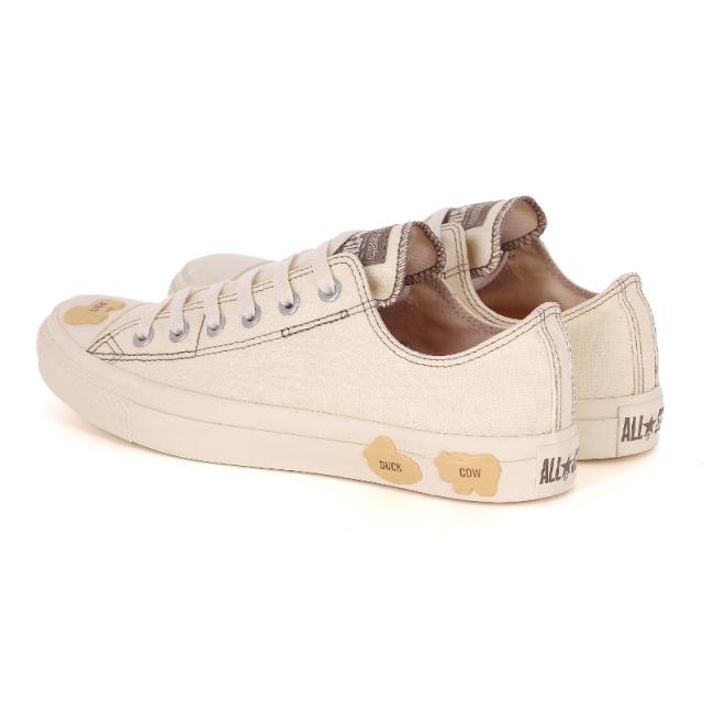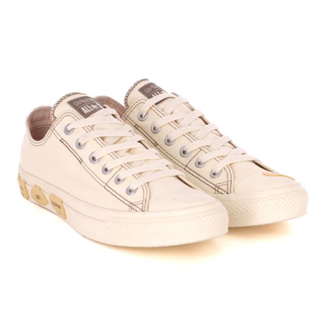 【商品特徴】 オールスターのコラボレーションモデル・ギンビス社のロングセラー商品であるビスケット菓子「たべっ子どうぶつ」とのコラボレーションモデル・どうぶつ型のビスケットをイメージしたラバーパーツをテープやトウキャップに付加し、アウトソールにもビスケットのデザインを散りばめたかわいらしいデザイン ・紐を通しても履ける2WAY仕様を採用した着脱性の高いモデル・ビスケットのイメージから、オフホワイトのアッパーに、ヒールラベルのロゴや織ネームをブラウンにアレンジすることでナチュラルテイストにまとめた一足 ・「たべっ子どうぶつ」と「ALL★STAR」のオリジナル織ネームをタンに付加