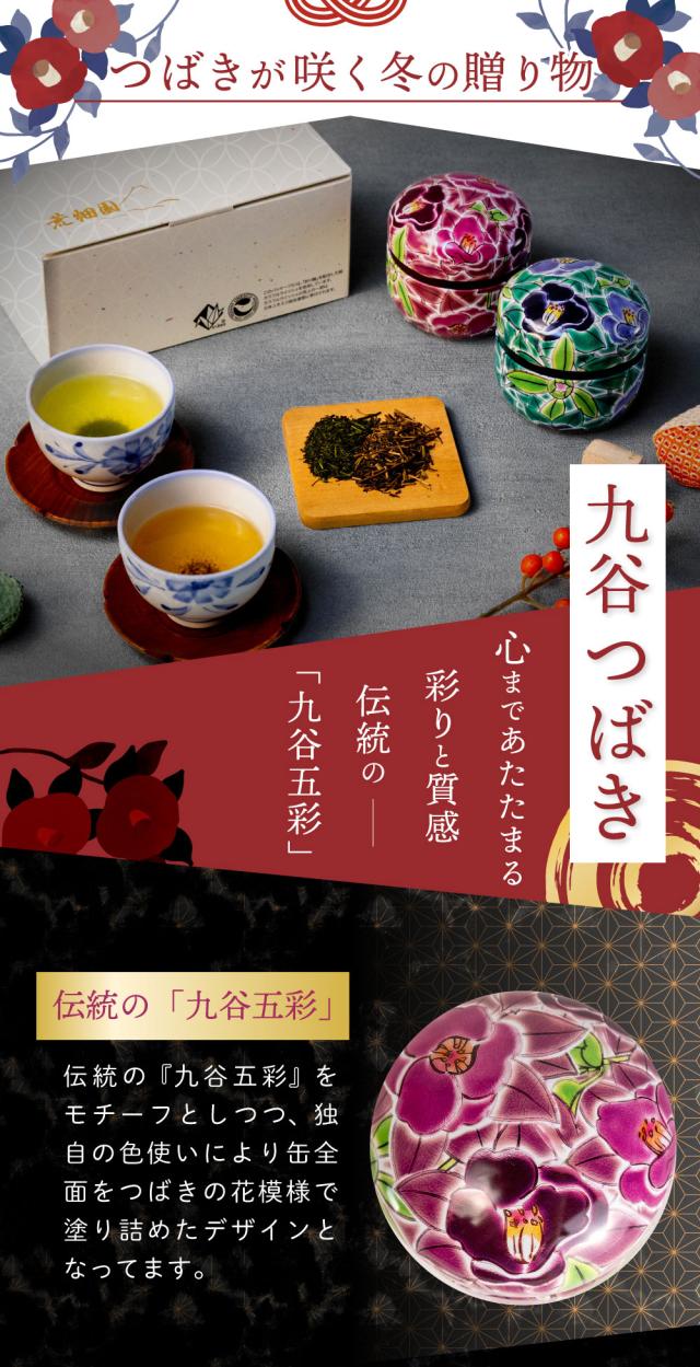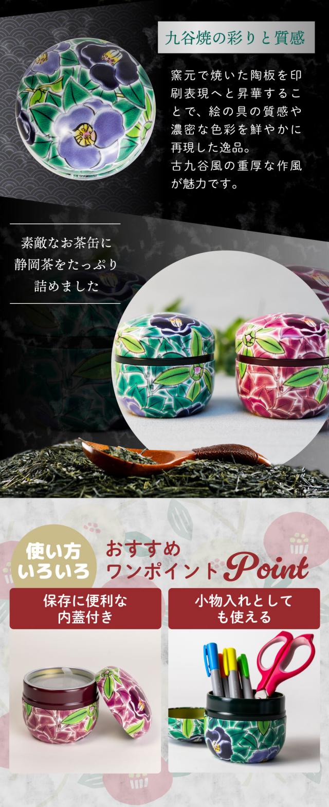 お歳暮 ギフト お茶 九谷つばき缶 青緑 赤紫 花柄 2本箱入 ギフト 静岡茶 新茶 茶葉 ほうじ茶 伝統 九谷焼 人気 緑茶 送料無料 50代 60代 70代 80代 深蒸し茶 日本茶 お茶缶 プレゼント agesugi_sgu