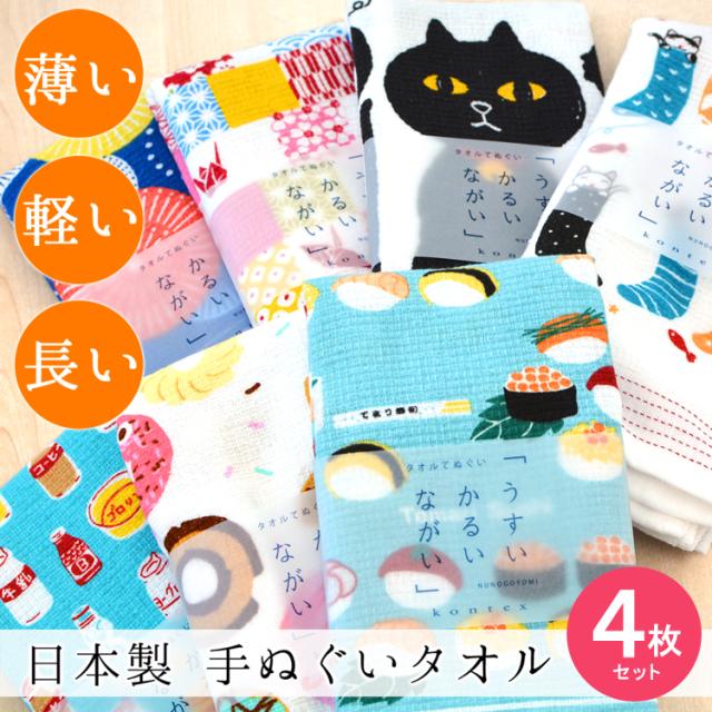 日本製 今治産 ガーゼ タオルてぬぐい 4枚セット 手ぬぐい てぬぐい 33×100cm 和柄 スポーツタオル フェイスタオル 手ぬぐいタオル アウトドア スポーツ キャンプ サウナ お風呂 綿100% 吸水 速乾 軽い ヨガ ギフト プレゼント 男性 女性 【メール便送料無料】