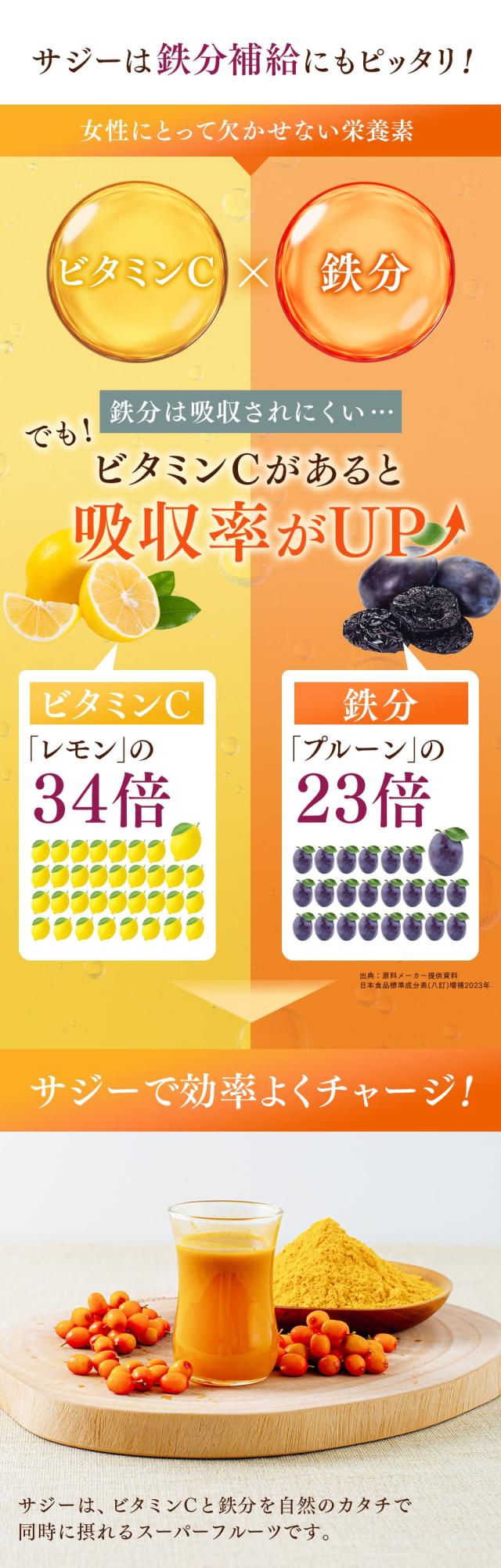 サジーには鉄分もビタミンCも豊富に含まれているため、自然なかたちで効率よく摂取できます。