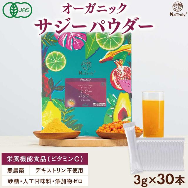 オーガニック サジーパウダースティック3g×30本 有機JAS認証 栄養機能食品(ビタミンC) デキストリン不使用 沙棘 シーバックソーン 鉄分補給 ナトゥリー