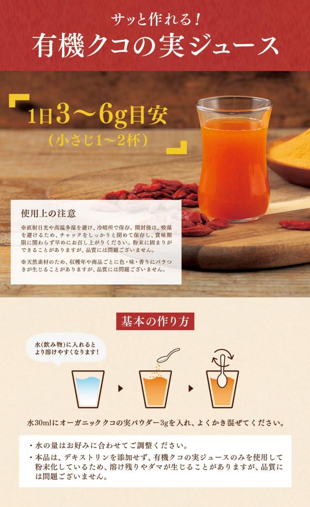 | 原材料名 | 有機クコの実果汁(中国製造) |